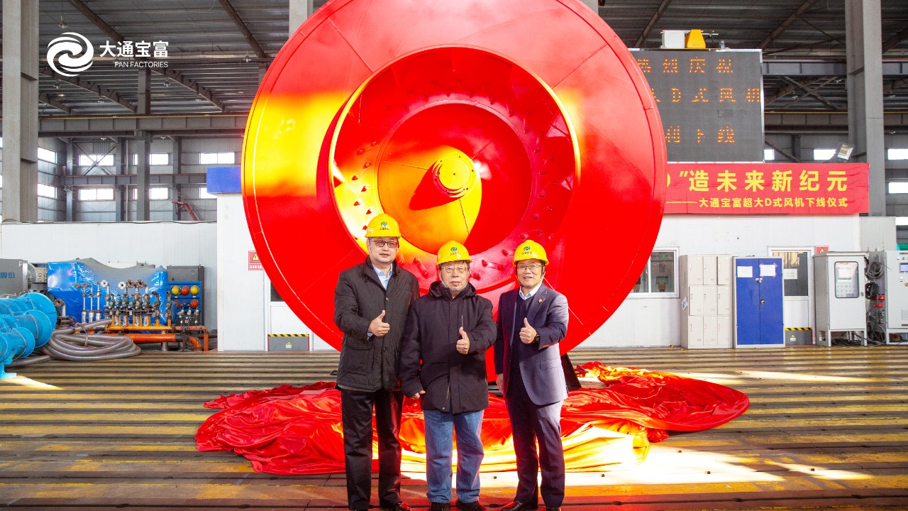 五十九年風(fēng)雨兼程,五十九載匠心傳承。在一代代大通寶富人的砥礪前行中,我們?cè)俅斡瓉砝锍瘫畷r(shí)刻------首臺(tái)超大D式離心通風(fēng)機(jī)正式下線。中國通用機(jī)械工業(yè)協(xié)會(huì)名譽(yù)會(huì)長蘇永強(qiáng)、中通協(xié)風(fēng)機(jī)分會(huì)秘書長郭宏親臨現(xiàn)場,與公司共同見證了這一榮耀時(shí)刻。