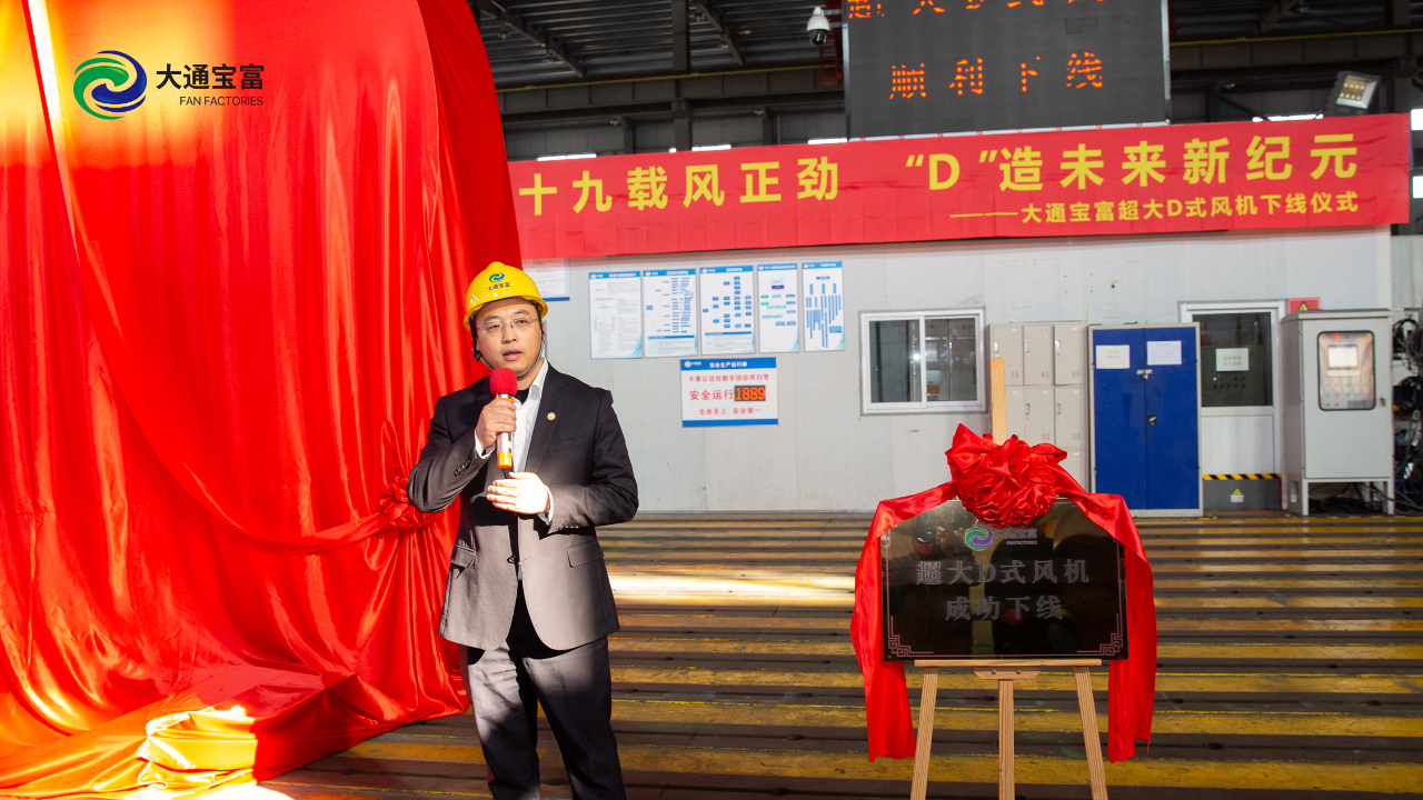 在莊重的揭幕儀式中,公司通風(fēng)機(jī)總裁崔小健詳細(xì)介紹了超大D式風(fēng)機(jī)的結(jié)構(gòu)特點(diǎn)與突破,蘇總同周董攜手為新產(chǎn)品揭幕,標(biāo)志著大通寶富在工業(yè)風(fēng)機(jī)領(lǐng)域創(chuàng)新實(shí)力的集中展現(xiàn),也象征著我們?cè)诟咝Ч?jié)能的征程上邁入了全新紀(jì)元。